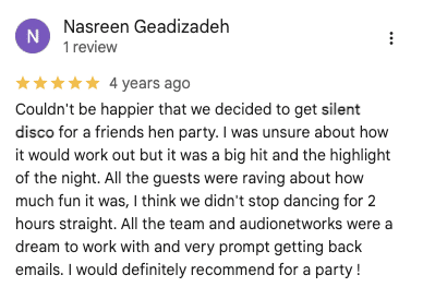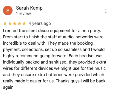 it was fantastic. The client said it was the best Staff party they have ever had and are looking forward to next years now. All went really well. they loved the silent disco. Many thanks for your help with this.Kind Regards,