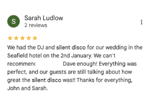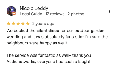 “We had the Silent Disco come and play at one of our corporate events over the summer and they were brilliant, kept the dance floor packed all night with everyone dancing to different music… It was hilarious and awesome!”